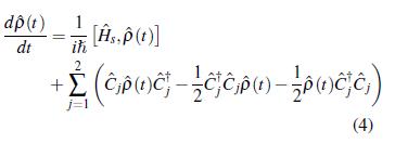Para determinar las correlaciones cuánticas de los átomos se encuentra la solución de la ecuación maestra Lindblad del operador densidad atómico