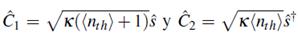 corresponde a un operador colectivo del campo electromagnético. k es la constante de acoplamiento de las cavidades al baño térmico.