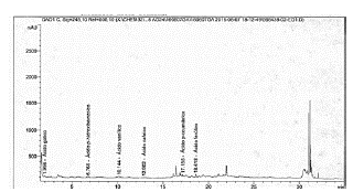 Las muestras de extracto C. sinensis obtenida por ultrasonido y Soxhlet, fueron analizadas por duplicado, las figuras 1 y 2 se observa el análisis obtenido por cromatografía de los extractos de cascara de naranja.