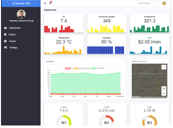 IoTMonitor-WQ, thanks to LoRa technology, allows to make trade-offs between the amount of data to be transmitted, the range and energy autonomy, an advantage for studies in remote areas, in a range of 20 km in rural areas and 5 km [9] in urban areas. Another advantage is that it has certified sensors and the backup of the data collection. It also has its web service built for real-time monitoring, with the backup of the information on-site and in the cloud generating reports on data analysis.
