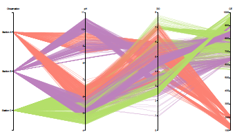 Figure 14 Parallel coordinates for data collection from the three IoTMonitor-WQ devices over a period of 5 continuous months of system operation.
