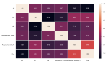 It was found that there is an inversely proportional relationship between water temperature and flow about the amount of dissolved oxygen and pH. This correlation can be inferred that the dissolved oxygen concentration is temperature-dependent. As for the flow rate, we determine a directly proportional relationship between oxygen concentration and water flow rate.