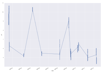 The average pH of the water in the influent is 6.64, which indicates that it is within the parameters for a distributed system, which means that the water is neither acidic nor alkaline. Still, it is also observed that it has absolute extremes of a minimum of 4.34 and a maximum of 10.69.