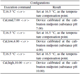 The pH sensor needs to be calibrated with the standard substances: 4.00, 7.00, and 10.00, as shown in Table 4. This conditioning is designed to cover the three states in which the pH level can be located while performing the calibration procedure. Moreover, the ambient temperature influencing the process.