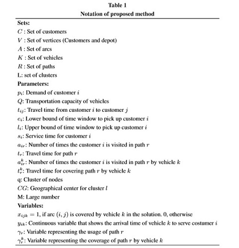 Where γkr is the number of times path r is used by one vehicle k. Using xkijr we can define the cost of a path, tkr, and the number of times a customer i is visited by vehicle k, aki , as: