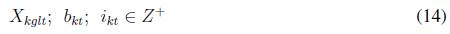 Xkglt Número de lotes a ser requerido del artículo k del proveedor g del tamaño de lote l en el tiempo t