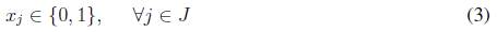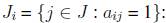 if the column j is in the solution, 0 otherwise. The constraints ensure that each row i is covered by at least one column.