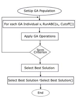 The Figure 2 shows the meta-optimization approach developed to solve the SCP. Once the GA population is generated, each individual is taken to run the ABC algorithm until a certain cut-off. Then, the genetic operators are applied and a termination criterion is evaluated in order to stop the parameter setting. Once the termination criterion is achieved, the best individual from the GA contains the best parameter set which is selected to run the ABC algorithm.