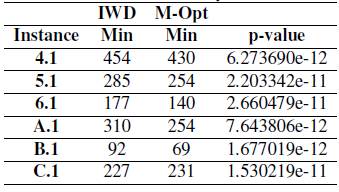 Additionally, our proposal was compared with the constructive Metaheuristic called Intelligent Water Drops presented by [31]. For this comparison was used the first instances of the groups 4, 5, 6, A, B y C. The results are shown in the table IV.