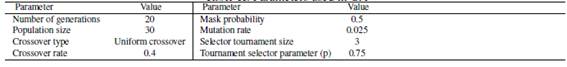 GA has been successfully used in various algorithm configurations, a particular case is the presented by Grefenstette [24], that used it to find the parameter values of another genetic algorithm. Another example is [25] where several subpopulations are used and a specialized cross-over operator to generate new candidate configurations. On the other hand it was recently used by Senthilkumar in [26] to find the parameters of the arc welding process with flux core. Using a proven algorithm in the search for configurations, allows us to validate our proposal.