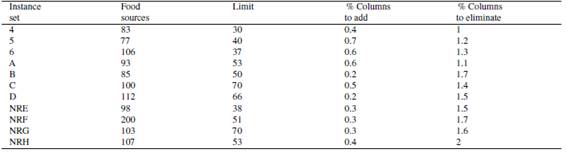 The ABC algorithm was executed 30 times for each instance, where the main features are shown in the Table I,where the density corresponds to the percentage of non-zero in the matrix.