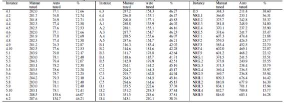 In order to demonstrate that our approach helps to improve the overall time to solve a problem, to contribute to the search for a good configuration parameters in less time, we use the table VIII it shows the times used for the configuration of each instance. Manually we used 5 hours, in contrast with GA we use 720 seconds for each group of instances.