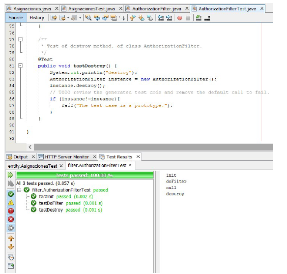 Se realizaron pruebas unitarias con la herramienta JUnit a la clase encargada de gestionar la seguridad para el aplicativo y el web service (Figura 10).