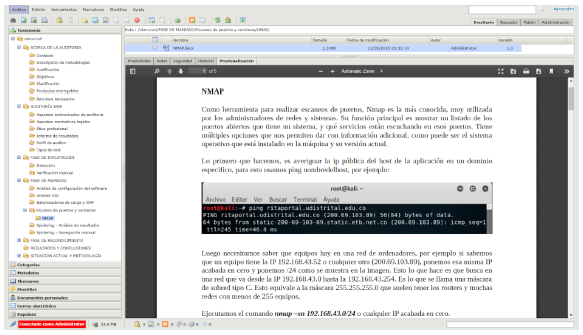 Esta subsección muestra información relacionada con el escaneado de puertos, ya que en el tema de mapeado es una tarea inevitable para la auditoría. La subsección se desarrollará con información que se extraiga de la herramienta de escaneado de puertos TCP y UDP Nmap. Se tiene el fin de que el usuario tenga disponible la información de los puertos extraídos con herramienta.