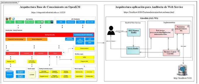 La arquitectura de la solución se desarrollará bajo la arquitectura cliente-servidor del lado de la base de conocimiento y de componentes independientes del lado de la auditoría del web service.