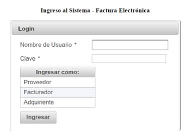 Fase elaboración: Tomando en cuenta los requisitos funcionales y no funcionales se implementó la aplicación, la cual soporta la solución de Factura Electrónica Web y se crea el inicio de sesión general de dicho aplicativo con un tipo de usuario.