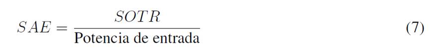 La eficiencia estándar de aireación (Standard Aeration Efficiency - SAE) es expresada como la transferencia de oxígeno por unidad de potencia (kgO2·kW−1 ·h −1 ), tal y como se señala en la siguiente ecuación: