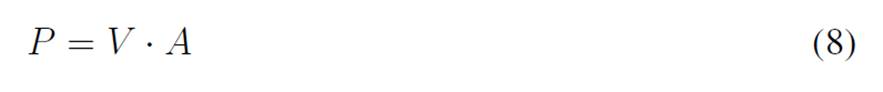 La potencia en vatios (w) del motorreductor fue calculada como el producto de la tensión eléctrica (voltaje) multiplicada por la intensidad de la corriente eléctrica (amperaje); con base en la siguiente ecuación:
