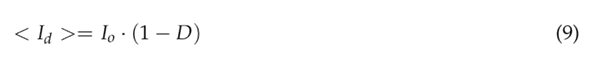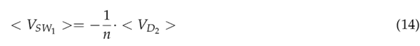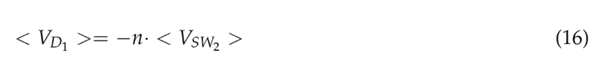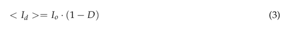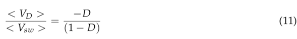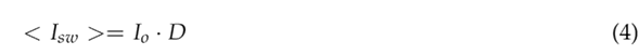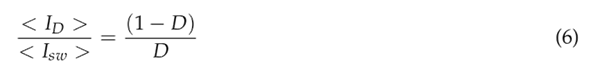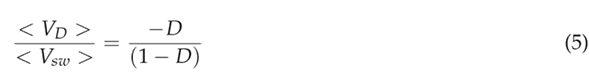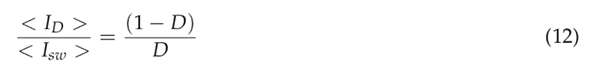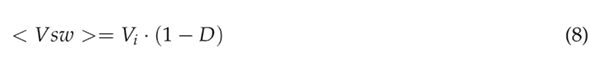 Perfect alternation between the diode and switch conduction states is assumed, i.e., no simultaneous conduction or simultaneous non-conduction is possible. The average value (in a switching cycle) of the signals is defined as follows: the average diode voltage (< V d >), the average IGBT voltage (< V SW >), the average diode current (< I d >), the average switch current (< I SW >), and the average value of the function u (D, 0 < D < 1)) corresponding to the duty cycle. From the above, Equations (7), (8), (9), (10) are obtained.