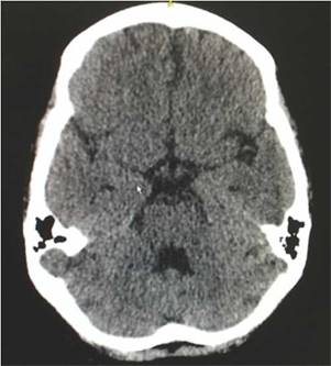 Ocho semanas después del egreso hospitalario presentó 2 episodios convulsivos tónico-clónicos, por lo que consultó otra vez al servicio de urgencias, realizándosele una punción lumbar que descartó neuroinfección, una tomografía cerebral simple que evidenció ligeros cambios atróficos corticales y microangiopáticos de pequeño vaso, además de una ligera dilatación del sistema ventricular (fig. 3). Se documentaron los siguientes resultados de laboratorio: complemento C3 de 77 mg/dl, complemento C4 de 18 mg/dl, creatinina sérica de 0,62 mg/dl, hemoglobina de 10,1 g/dl, leucocitos de 3.650 células y linfocitos de 820 células. El SLEDAI calculado en esta nueva hospitalización fue de 23. Se administró un nuevo esquema de metilprednisolona intravenosa de 250mg día por 3 días consecutivos, y posteriormente se continuó el esquema de prednisolona de 1 mg/kg por día que venía recibiendo y se decidió no suministrar manejo anticonvulsivante. Tuvo una evolución satisfactoria, sin nuevos episodios convulsivos con normalización clínica de la actividad lúpica y sin deterioro en la función renal, por lo que se dio egreso 10 días después de haber ingresado. Actualmente continúa en tratamiento con prednisolona en disminución progresiva de la dosis y con ciclofosfamida mensual, sin presentar nuevos eventos neurológicos ni episodios de dolor abdominal.