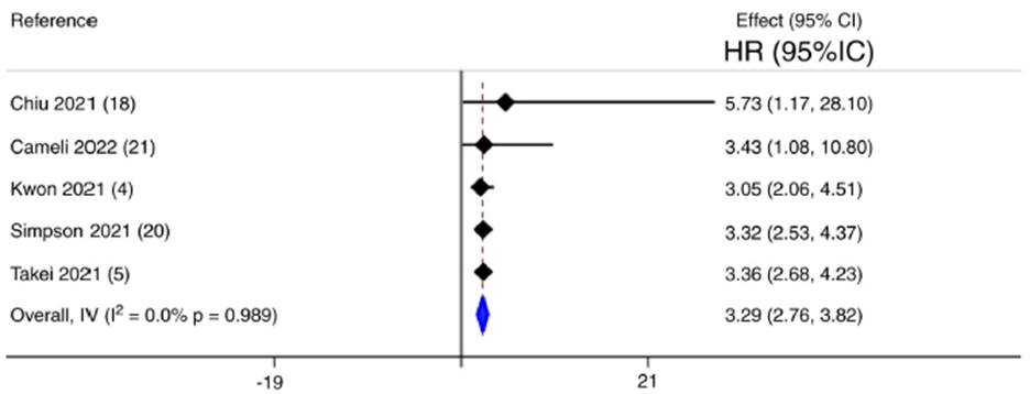 Differences have been observed comparing the survival of non-fibrosing ILDs and fibrosing ILDs (p = 0.02) (21 or PPF (p = 0.001, (22p = 0.04, (21p = 0.00129). Similar survival rates between PPF to IPF have been reported in other studies (p = 0.51, (21p = 0.629) or even worse for PPF if IPF has no progression, according to Takei (p = 0.001). (8 The mortality risk of PPF-ILD across studies is summarized in Fig. 3.