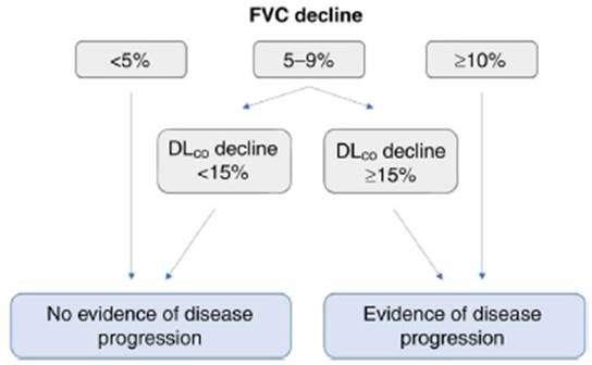 Fig. 5 Proposed definition of disease progression based on FVC decline. FVC: forced vital capacity; DLCO: diffuse capacity for carbon monoxide.