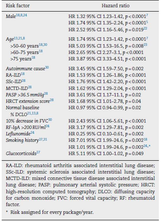 Table 4 summarizes the risk factors for death in the population of patients with autoimmune-related PPF-ILD.