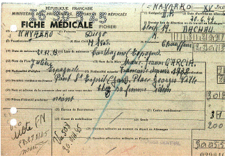 Entre la documentación de Caen hay dos fichas de exámenes médicos de 1945, posteriores a la liberación, la primera parece realizada en Alemania previa a la repatriación y la otra ya en territorio francés, que aporta datos del físico de Diego Navarro: "Altura; 182 centímetros. Peso; 55 kilogramos. Modo de repatriación; prioritaria en coche". La segunda ficha ofrece más datos: "Estado civil; casado. Llegada a Alemania el 20 de junio de 1944. Bloque 19 de Dachau. Padre; Julián. Madre; María Juana García. Con esa documentación podemos saber el nombre completo del deportado: Diego Navarro García. Otro de los certificados o atestados de pertenencia activa a la Resistencia es el firmado por el general Magnan y otros jefes militares, comandante de la IX región militar que además ilustran el recorrido por las prisiones francesas de Navarro antes de la deportación a Alemania".