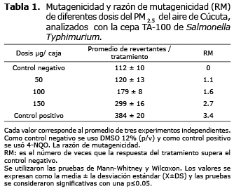 Actividad mutagénica y genotóxica del material particulado PM2.5 en Cúcuta, Colombia