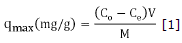 Caracterización de los carbones activados. Es de vital importancia evaluar ciertas propiedades físicas y químicas del carbón activado, de esta manera, se puede lograr una mejor interpretación de los mecanismos que se involucran durante los procesos que puedan darse. Para ello, se realizó el análisis próximo de los diferentes adsorbentes, el cual incluye contenido de humedad, cenizas y material volátil, siguiendo las normas ASTM D-2867-70, ASTM D2866 y ASTM D2866-94 respectivamente. El tamano de poros se determinó por dos métodos: por medio del índice de yodo siguiendo la norma ASTM D4607-94 y, por adsorción con azul de metileno aplicando el método Chemviron Carbon Company, el cual consistió en adicionar una cantidad de carbón activado a un volumen de disolución estándar de azul de metileno. La capacidad máxima (qmax) se calculó a partir de la ecuación 1.