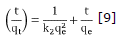 Where qe and qt (mg/g) are the capacity of adsorption in equilibrium in a t time respectively and, k1 (min1) and K2(g/mg min) are rate constants for each model 4,22. Values of qe and K1 were calculated from the linear graphics of log(qe-qt ) versus t as shown in figure 5.