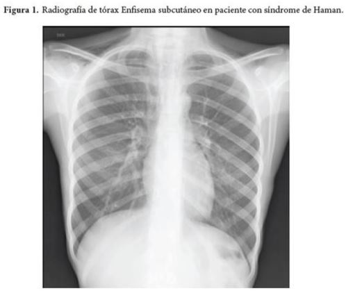 The main symptom is chest pain, followed by dyspnea and in the physical examination is important to recognize specific signs, of which the most common is the subcutaneous emphysema and Hamman’s sign, considered pathognomonic.