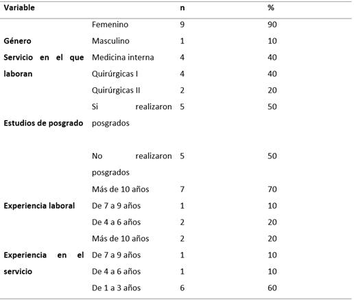 Tabla 4 Datos sociodemográficos de profesionales de enfermería encuestados.