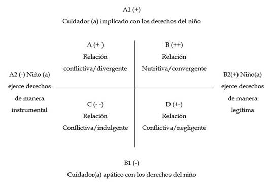 Respecto de las categorías propuestas, los hallazgos sólo validan tres de ellas, esto es, la relación conflictiva divergente, la conflictiva negligente y la nutritiva convergente.