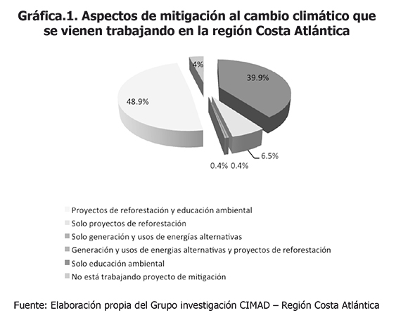 En la presente investigación se determinaron las acciones que se vienen emprendiendo en la Región Costa Atlántica a través de diferentes aspectos de mitigación al cambio climático que se están trabajando y la efectividad de las acciones.