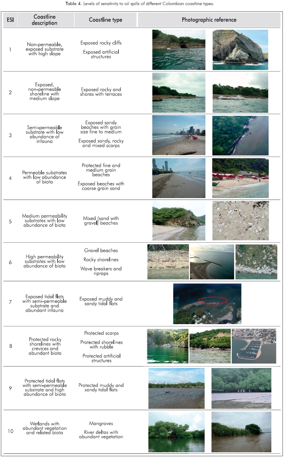 In Colombia, the only prior case of constructing an ESM was attempted by Tejada and Afanador (2003); nonetheless, these authors used the same ESI classification used by NOAA instead of adapting it to local ecosystems and conditions, as recommended by IPIECA (2011) and other organizations.