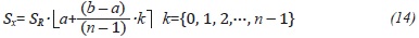 where a is the grid position of the first source (a = 25), b the grid position of the last source (b = 185), n the number of sources (n = 100), SR the spatial resolution (SR = 25 m) and