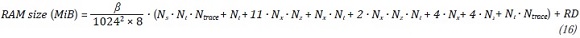 where Ns is the number of shots, Nt is the number of time steps, Ntrace is the number of traces, Nx, and Nz are the spatial dimensions, β is the number of bits, and RD is the RAM required to deploy the process (for our GPU, RD = 77 MiB).