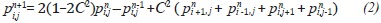 A graphical representation of the stencil used to implement the Equation 2 is shown in Figure 1. A single point,