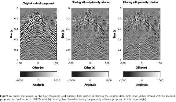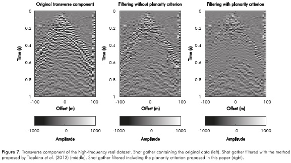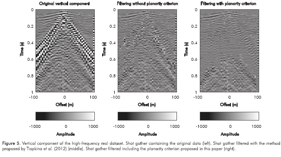 - The planarity criterion improved the performance of the SVD polarization filter proposed by Jin and Ronen (2005) and modified by Tiapkina et al. (2012). Remnant ground-roll energy in frequency (or time) was attenuated taking into account the third eigen-image obtained with SVD.