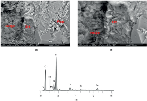 Figure 1 Images and elemental composition of the Berea. Quartz with some clay minerals (Kaolinite and lllite) Electron Microscopy Laboratory. Centro de Innovación y Tecnología, I.CP.