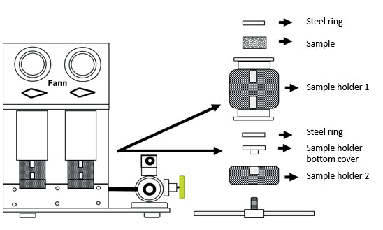 Figure 3 Fann compactor for preparing crude oil supported sand samples. Cements and drilling fluids laboratory. Centro de Innovación y Tecnología, I.C.P.