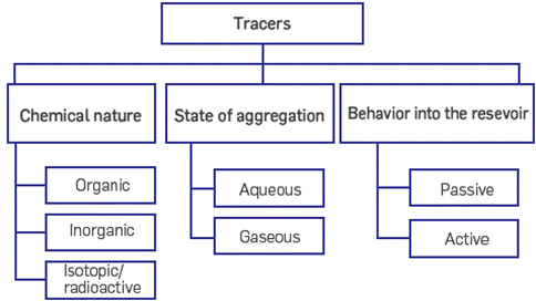 The tracer classification is broad and varies according to the test purpose. Three groups are commonly identified according to their chemical nature, state of aggregation, and behavior into the reservoir. The following figure (Figure 1) presents the general tracer technology classification
