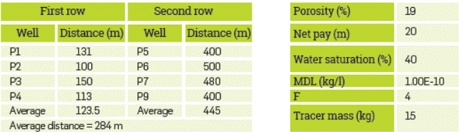 A critical parameter during test design is the amount of tracer to be injected capable of being detected in producer wells. Analytical methods commonly used for estimating the mass of tracer required combine different reservoir engineering techniques; three of the most important are described in Table 1.