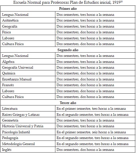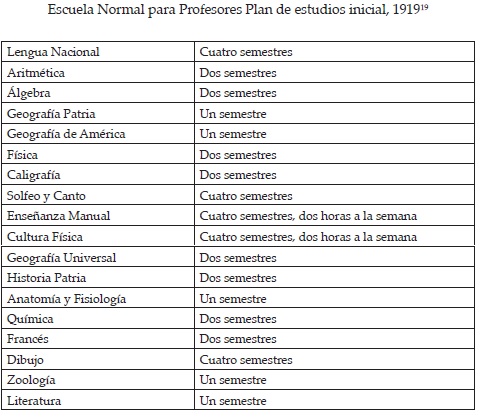 Después de un inicio incierto, la Universidad Michoacana inició sus labores académicas en enero de 1919. La Escuela Normal para Profesores, funcionó bajo la dirección de Ignacio Calderón, quien fue designado en 1917 y se mantuvo en el cargo hasta 1920. Por su parte, en la Escuela Normal para profesoras, la dirección fue ocupada por María Rodríguez Gil18. Las asignaturas programadas para ser impartidas fueron las siguientes: