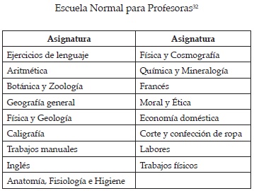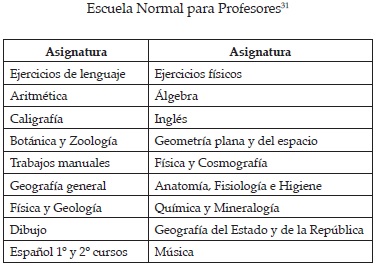 Las asignaturas propuestas para impartirse en esta nueva etapa de las Escuelas Normales fueron las siguientes: