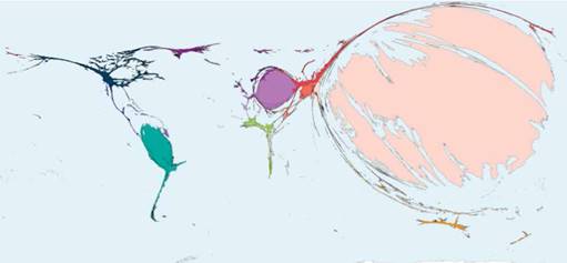 La información y los cartogramas fueron tomados del sitio web Worldmapper22, categoría y subcategoría educación y ciencia, respectivamente. Los cartogramas se construyen a partir de una representación redimensionada de los territorios, según las variables de estudio, donde el tamaño de cada territorio es proporcional al valor obtenido en dicha variable; método de representación propuesto por Gastner y Newman23, quienes basan el proceso de difusión de mapeo a partir de áreas con mayor a menor densidad. Worldmapper contiene información o estimaciones reportadas por diversas fuentes, entre ellas el Banco Mundial, la ONU, el PNUD, o bases especializadas construidas. Los colores del mapa agrupan los territorios en doce regiones geográficas24.