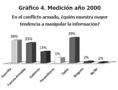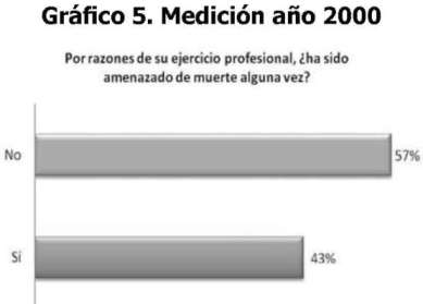 La investigación encontró además varios fenómenos que alertaron no sólo a los investigadores del Observatorio de Medios, sino también a las agremiaciones periodísticas y medios de comunicación en general; el periodismo colombiano estaba amordazado por la manipulación de la información (gráfico 4) y, lo que es más grave, un porcentaje significativo de periodistas había sido o estaba siendo amenazado de muerte (gráfico 5 y 6).