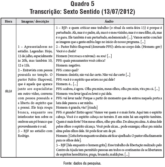 O trecho acima difere da forma como o programa vinha sendo conduzido. A primeira diferença diz respeito a uma referência negativa a membros da Igreja Católica que criticam os rituais da Universal. Esta foi a única menção de caráter crítico em relação ao catolicismo nos programas analisados.