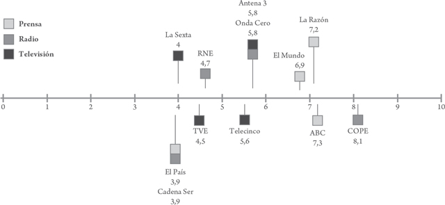 Figura 1 Ubicación ideológica percibida de los medios en España.